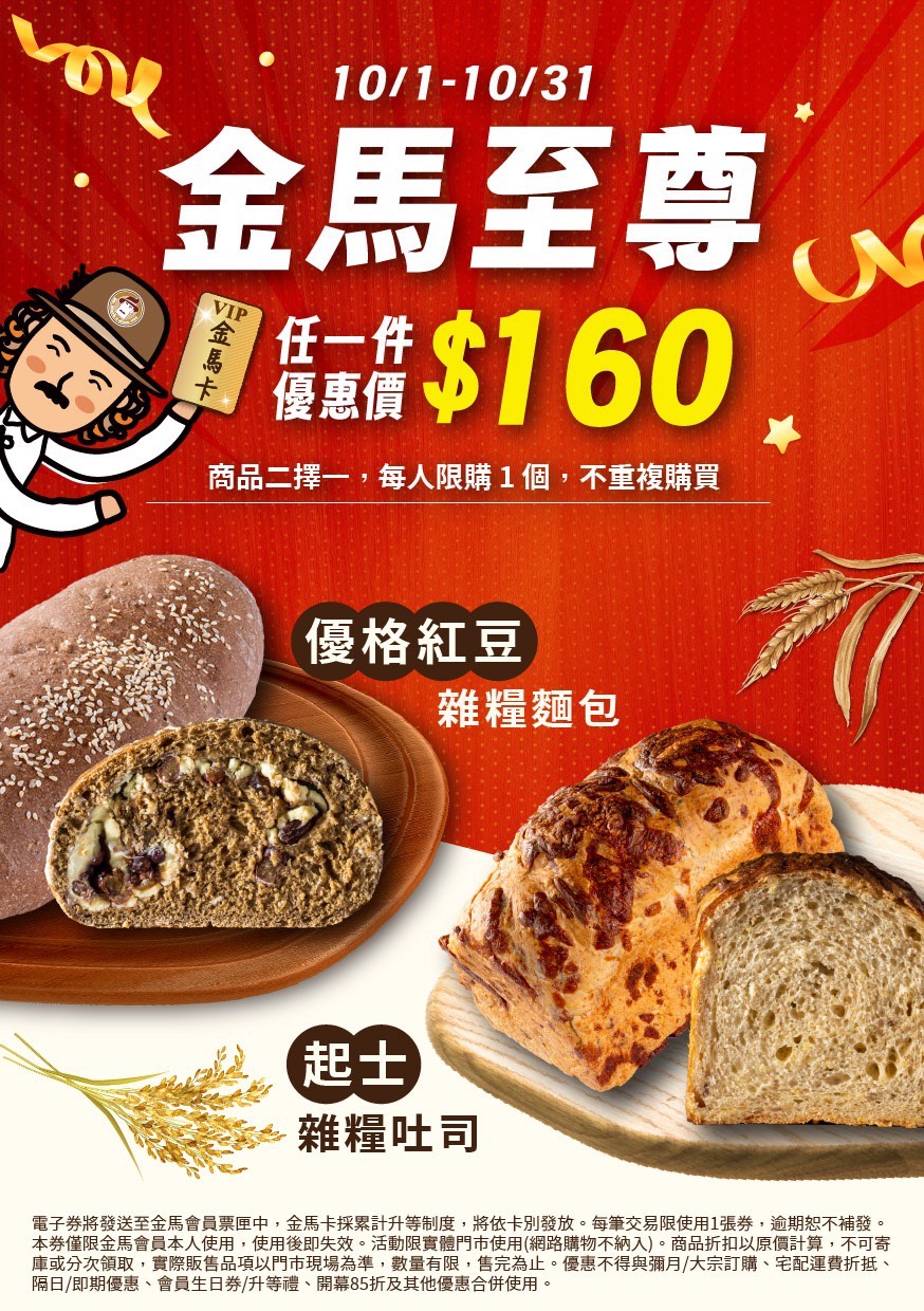 活動僅限實體門市適用(網路購物不納入),商品折扣以原價計算,需搭配組合價方可享優惠。恕不接受寄庫或分次領取,部分品項為區域限定,實際品項以門市現場供應為準。本優惠不得與彌月/大宗優惠、宅配運費、隔日/即期品、會員生日券/升等禮、開幕85折及其他優惠併用。