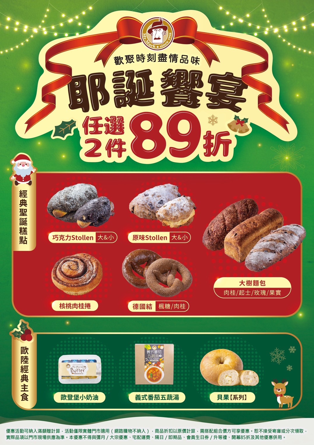 ◉ 活動內容:指定耶誕暖心品項任選兩件89折。